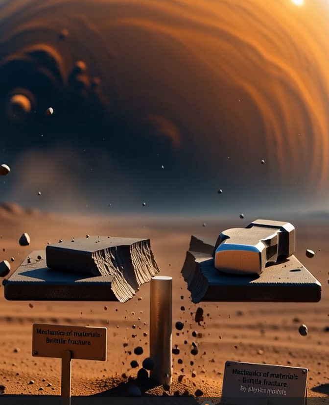 The stunning visual below shows a BRITTLE fracture of cast iron. The plate has simple sheared off, like butter cut by a knife.
