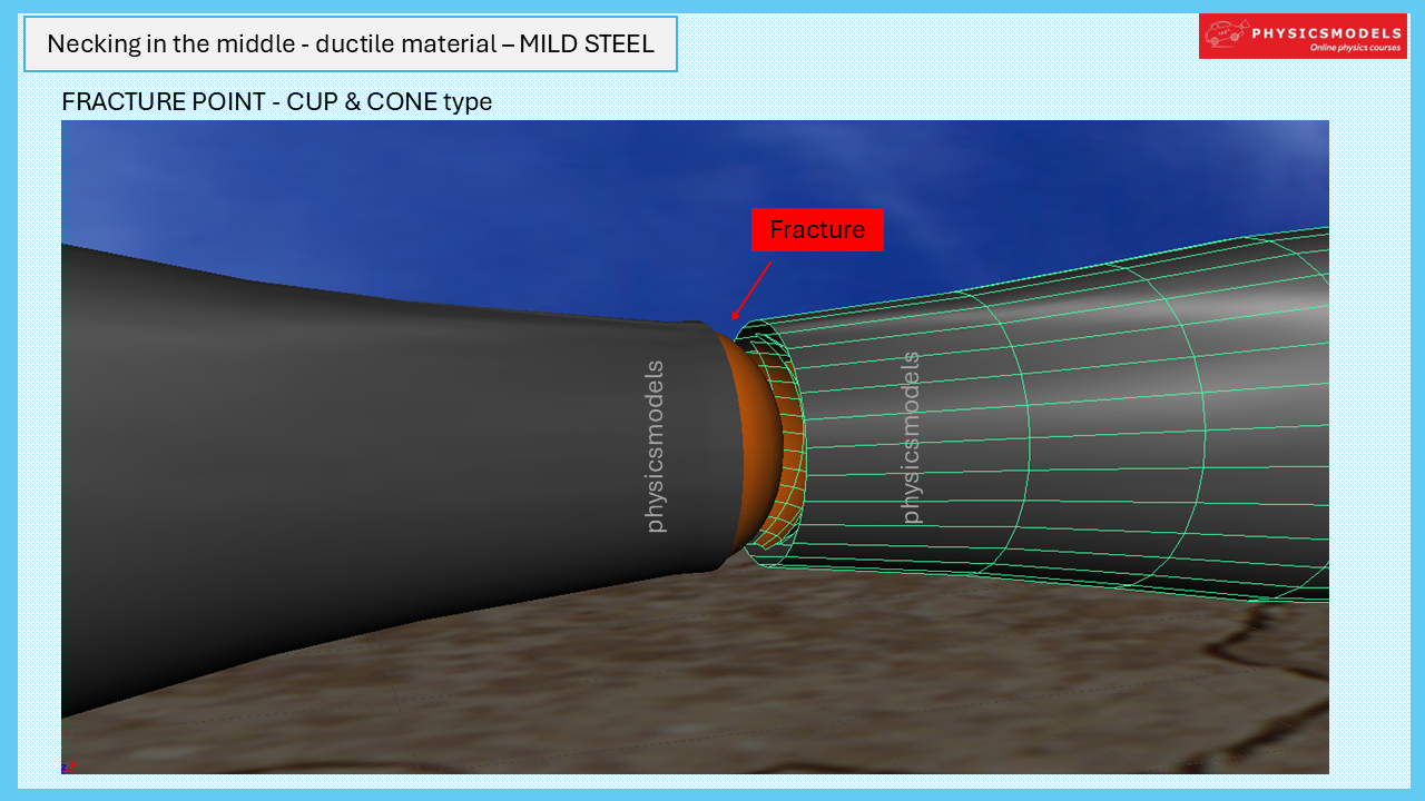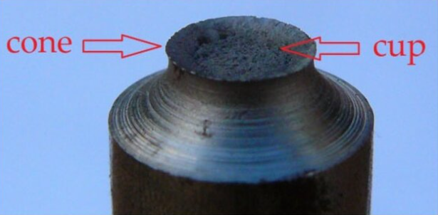 Another image below to help you understand the CUP & CONE failure mode of Ductile materials, such as MILD STEEL (LOW CARBON STEEL.)