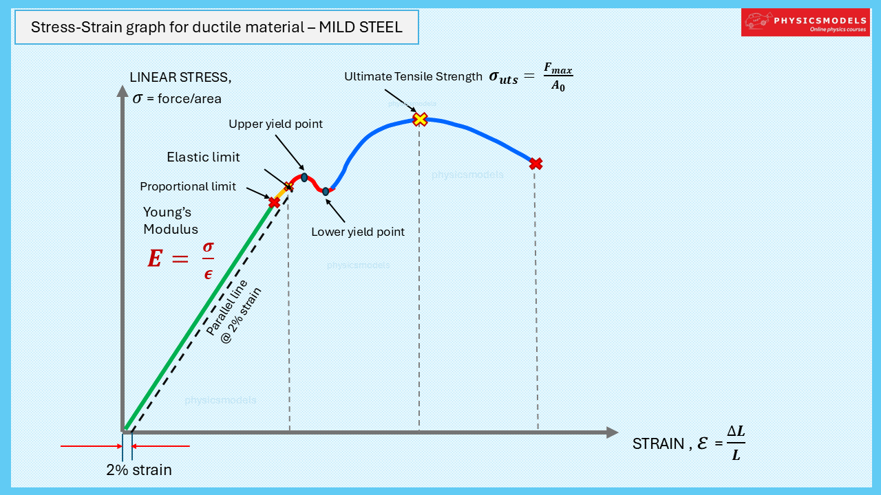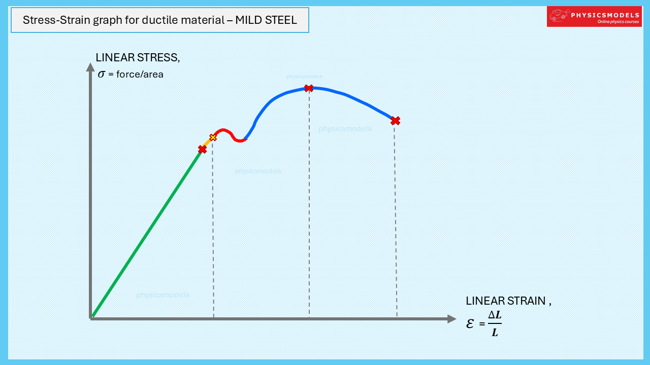 If a metal is deformed beyond a particular stage, it would remain deformed and won’t bounce back to its original shape. This behaviour (story) can be explained by a graph of Stress versus Strain.